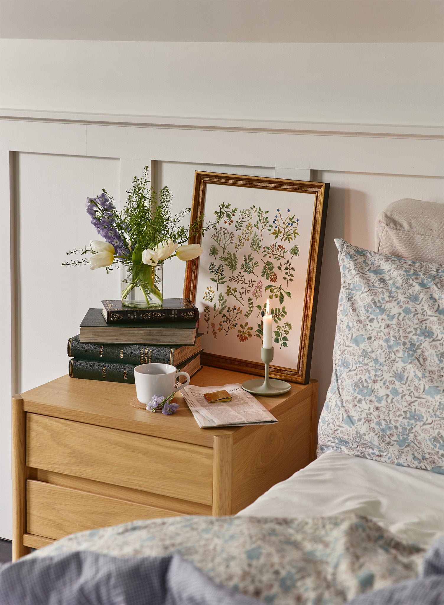 Ideal for a serene home office or a tranquil guest room, this print brings a touch of nature indoors. Pair it with a simple wooden frame to enhance its organic feel, or opt for a sleek black frame for a modern contrast. Complement the look with soft linen curtains, a ceramic vase filled with fresh greenery, and warm, ambient lighting to create a peaceful, inviting space.